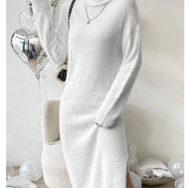 Let’s start with the star of the show – the SHEIN Priv Turtleneck Drop Shoulder Split Thigh Sweater Dress. Picture this: a soft, oversized turtleneck sweater dress that hugs you in all the right places, complete with a thigh-high split for a touch of sass. It’s the perfect combination of comfort and chic, allowing me to stay cozy without sacrificing style.