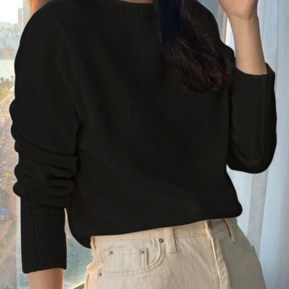 First things first, the foundation of my outfit– the sweater. The DAZY Crew Neck Solid Color Casual Basic Sweater is an absolute essential in my wardrobe. Its cozy knit fabric and classic crew neck design make it an ideal piece for layering or wearing on its own.